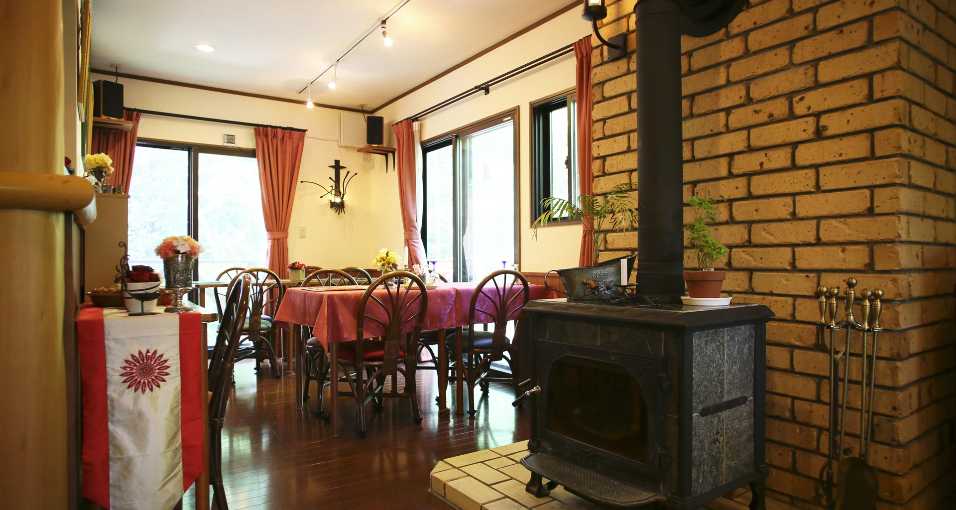 ディナーは、メインディッシュをフレンチコースか、チーズフォンデュのいずれかをお選びいただける洋風コース料理となっております。ローソクの火が揺らめくダイニングルームで、音楽を聴きながらの優雅なお食事を。朝食は、当ペンション自慢の焼きたてパンをご用意しております。朝からしっかり食べたい方も満足していただけるボリューム満点で、美味しいパンをお召し上がりください。